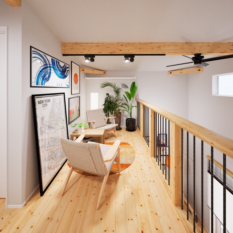 吹き抜けに面した2階の空間は、フリースペースに。