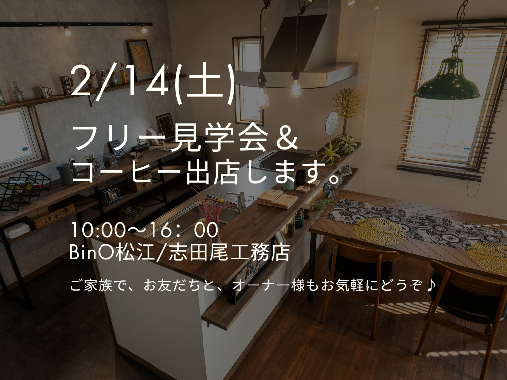 2/14(土)モデルハウスフリー見学会&フジハラさんコーヒー