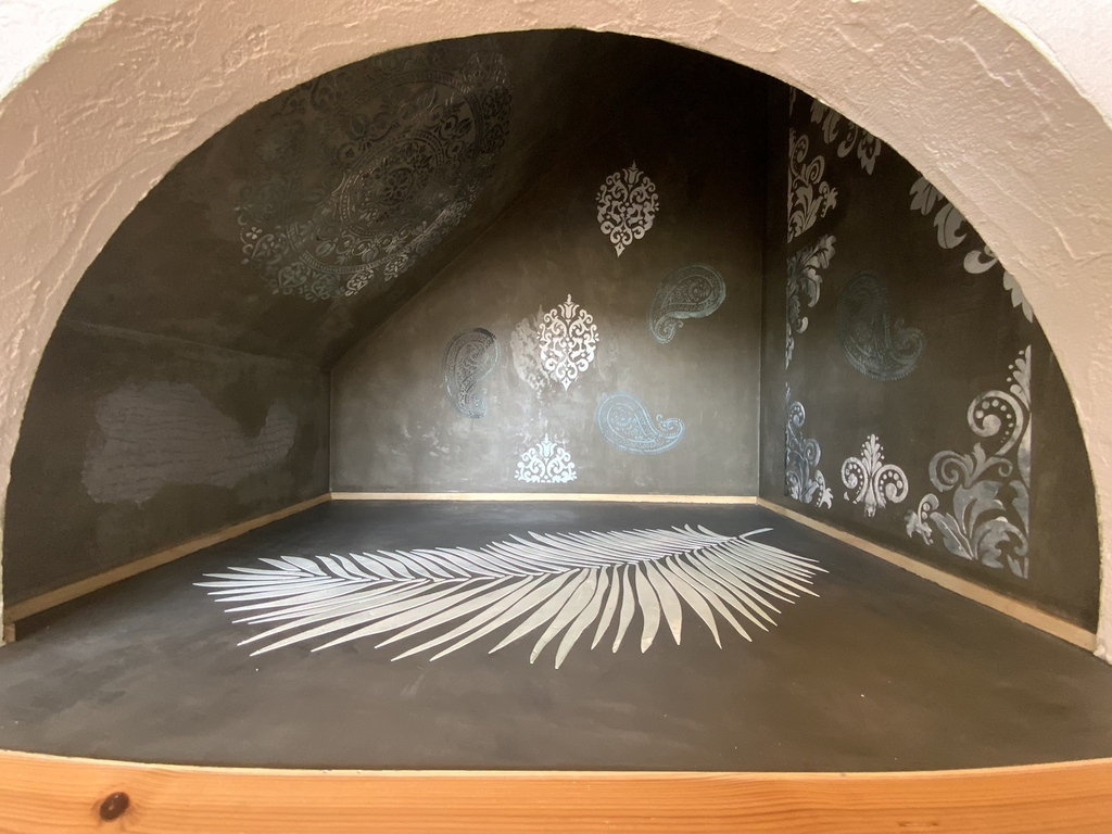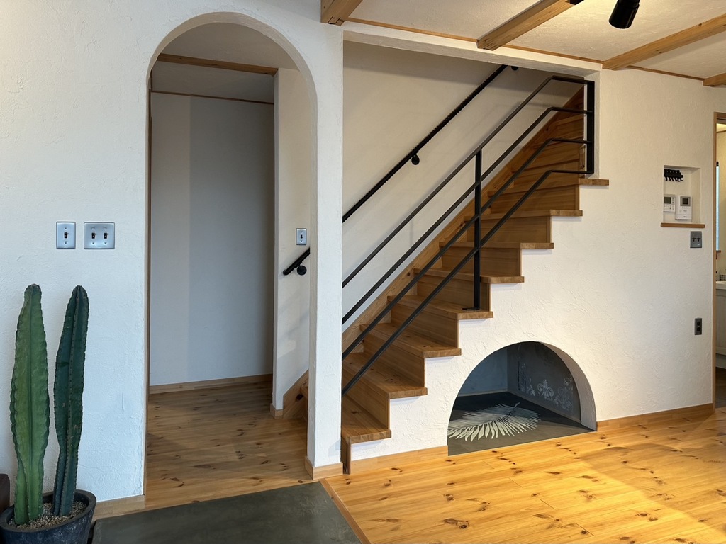 階段下のデッドスペースを活用。トルコのマイクロセメントとステンシルコンクリートで、ひんやり&お手入れ簡単。