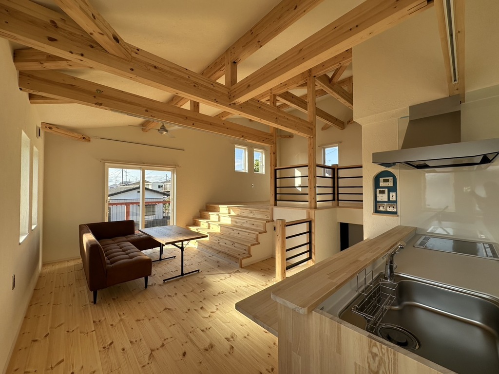 ナチュラル素材のあたたかさと、スキップフロアならではの開放感。