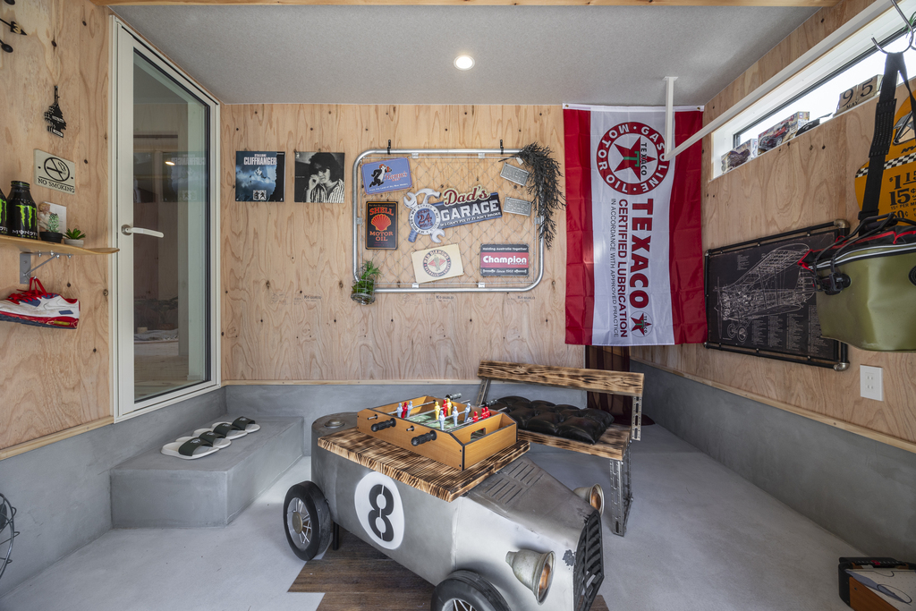 0.5階フロアは土間仕様のフリースペース。ライフスタイルに合わせてこだわり空間へ。