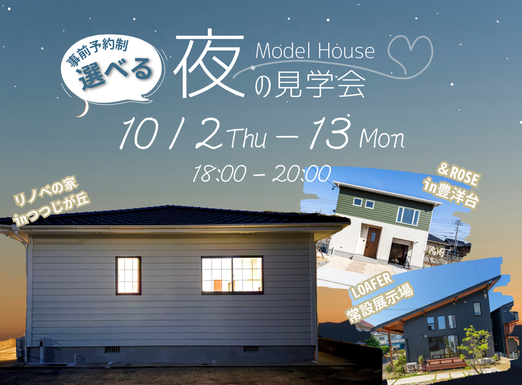 タイトル 長崎市・時津町|夜のモデルハウス見学会開催!〜秋の夜長に暮らしをのぞこう〜