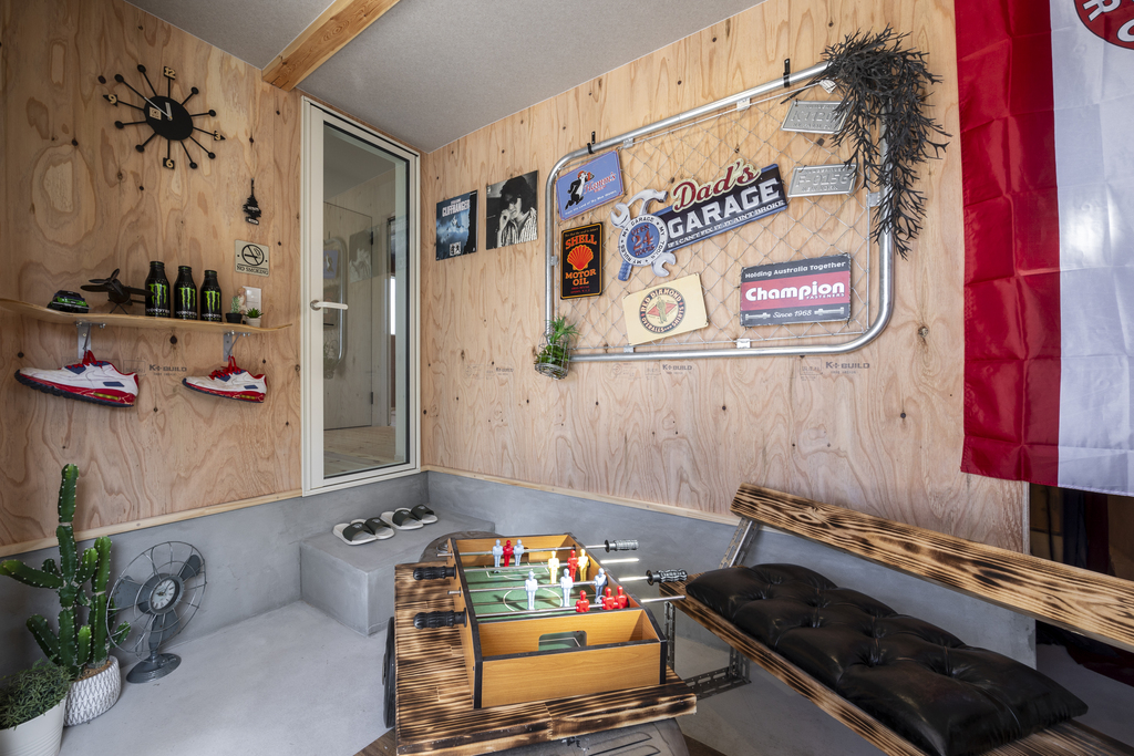 小屋裏はみんなの秘密基地。夜の見学会だとホームシアターの雰囲気も思いっきり味わえます。