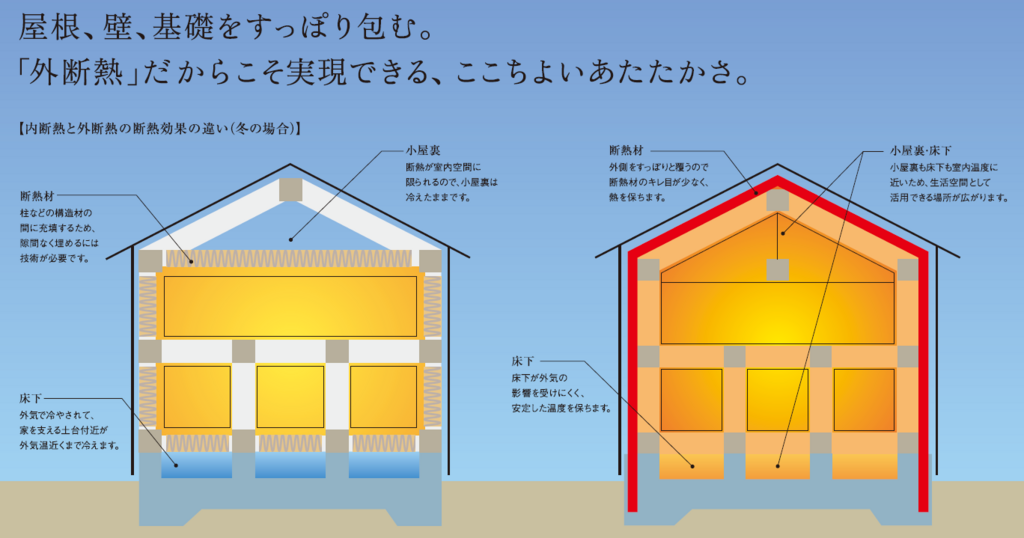 冬は断熱材で家全体を包み込み、ほっこり暖かく、