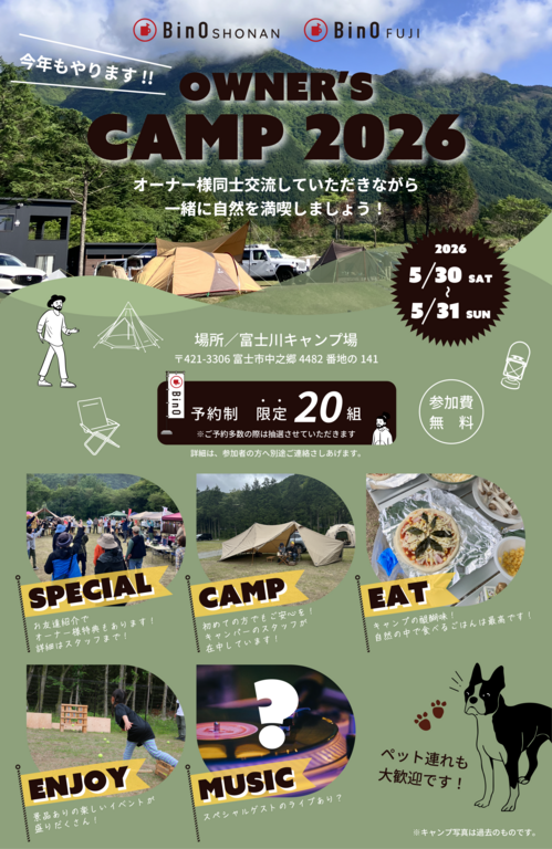 BinO湘南・BinO富士OWNER'S CAMP 2026