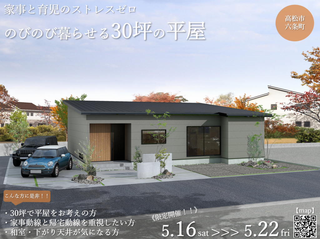 | タイトル | 《高松市六条町》家事と育児のストレスゼロのびのび暮らせる30坪の平屋 |
