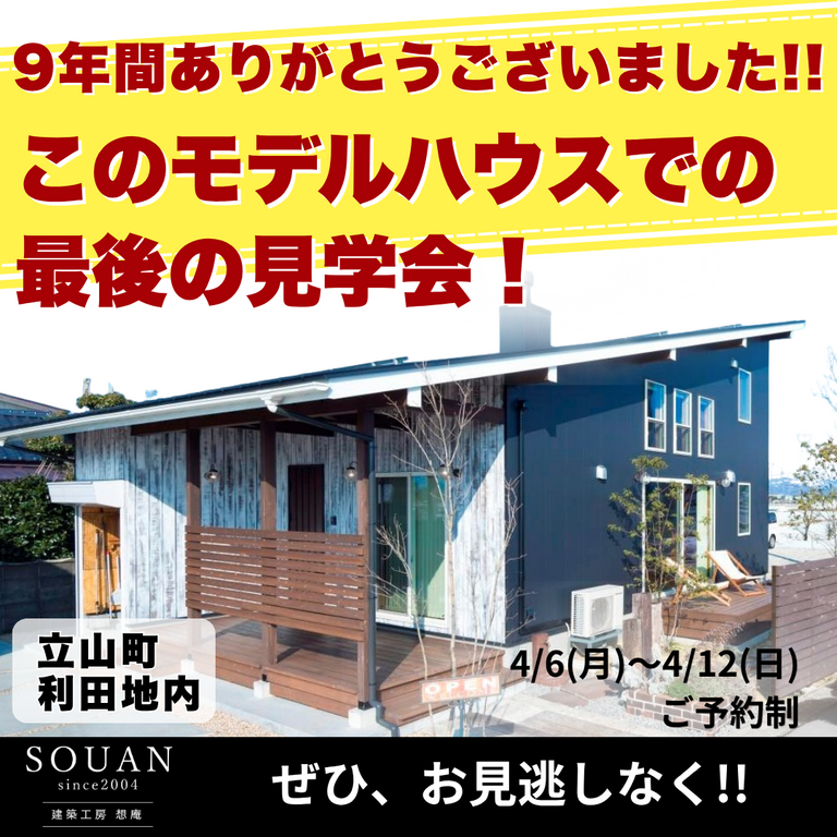 4/6(月)~4/12(日) このモデルハウス最後の見学会!!