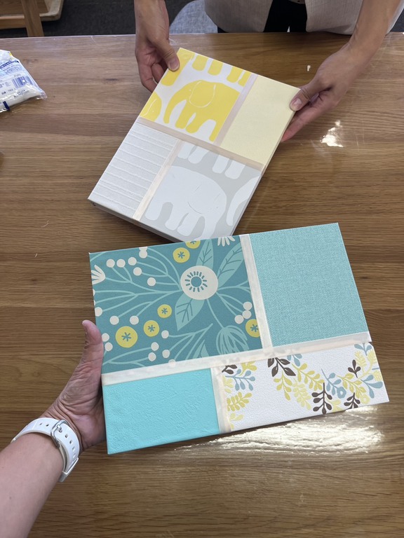 たくさんの壁紙のなかから自分の好きな色、好みの柄を選んで組み合わせてつくるアートパネル🎨