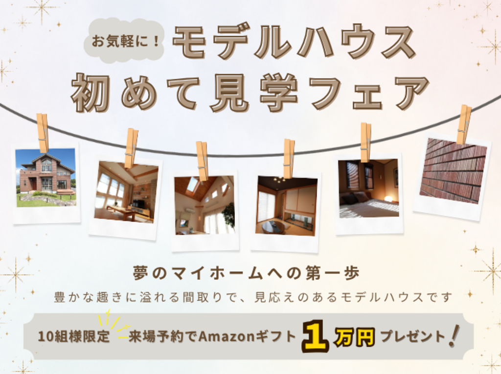 | タイトル | お気軽に♪モデルハウス初めて見学フェア*特典Amazonギフト1万円プレゼント! |