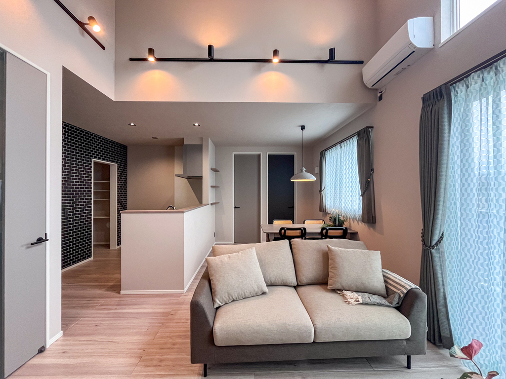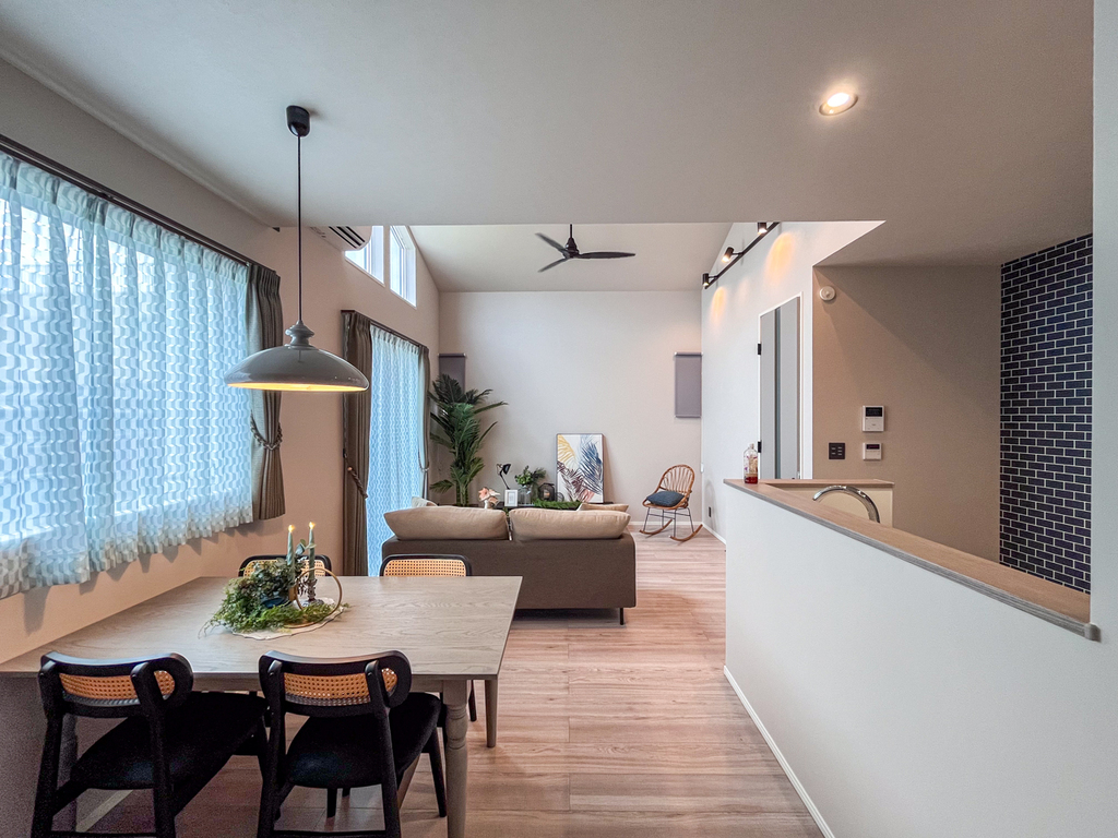 - 勾配天井によるゆったりとした開放感あるリビング空間