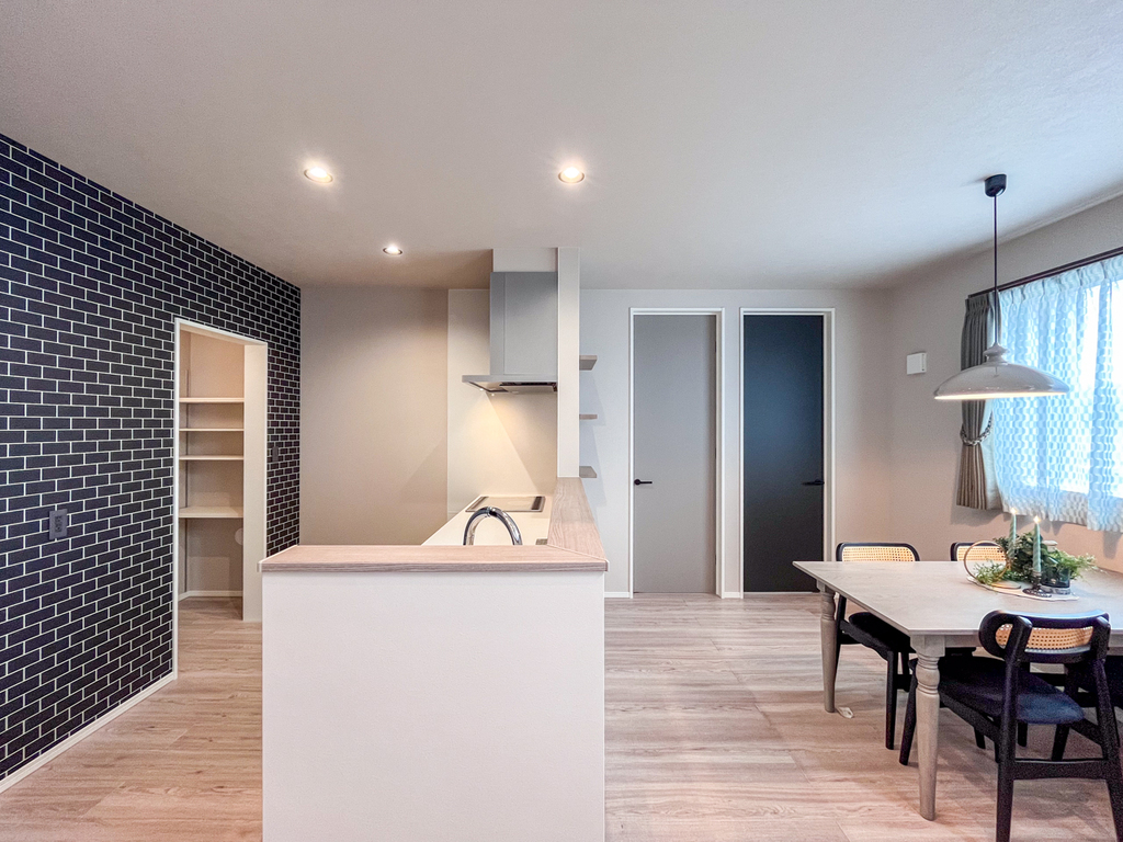 人気のカフェテイストな外観と、グレージュカラーの内観