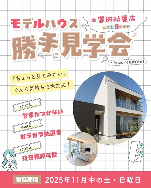 | タイトル | 【11月は毎週末開催】モデルハウス勝手に見学会@クレバリーホーム豊田秋葉展示場 |