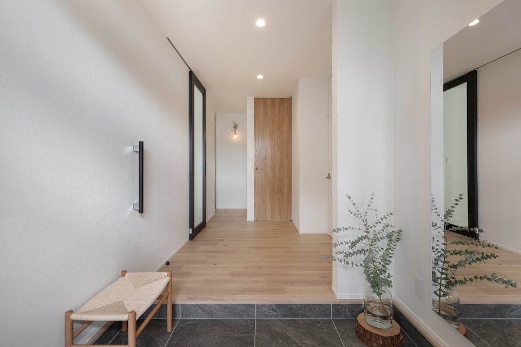 2階建ての今回のお住まいは、玄関を挟んで南側にLDKや水回りを、北側には6畳の和室をレイアウト。
