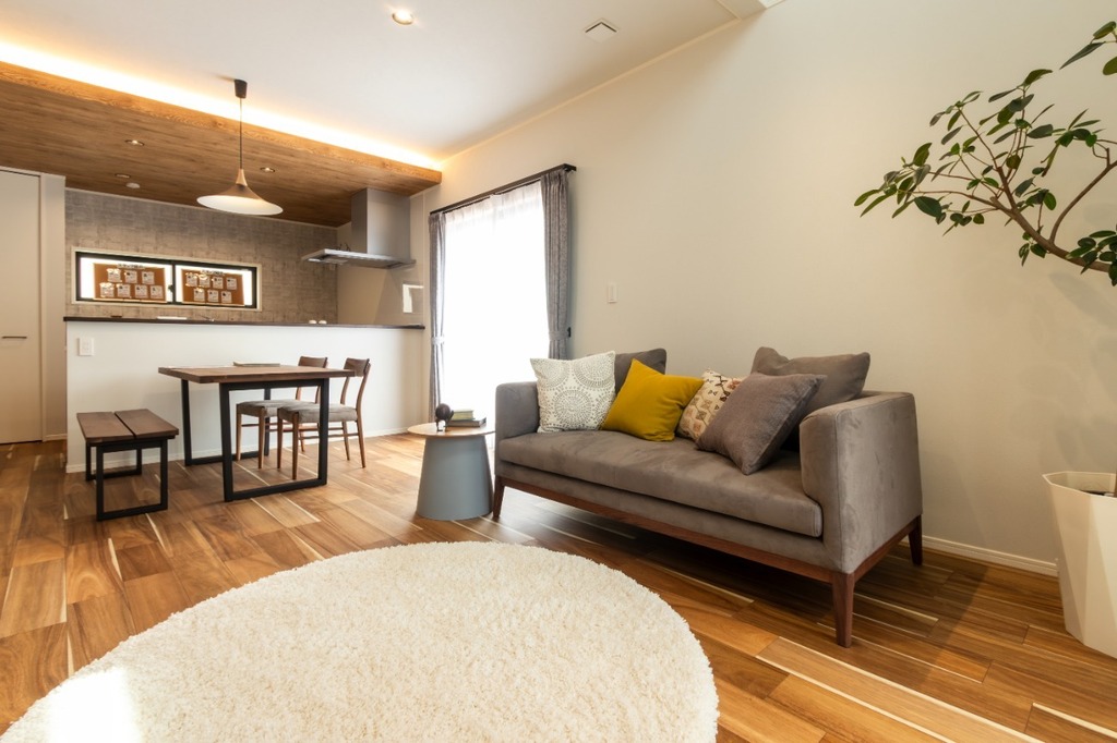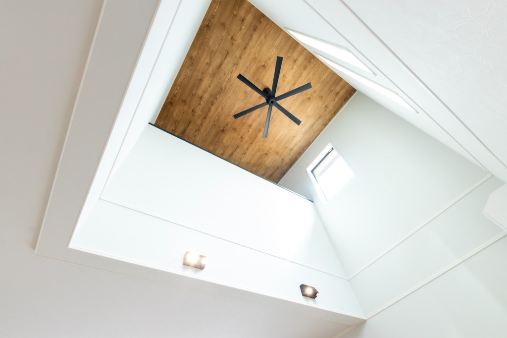 - 吹き抜けのある、明るく、開放感のあるリビングを体感できる