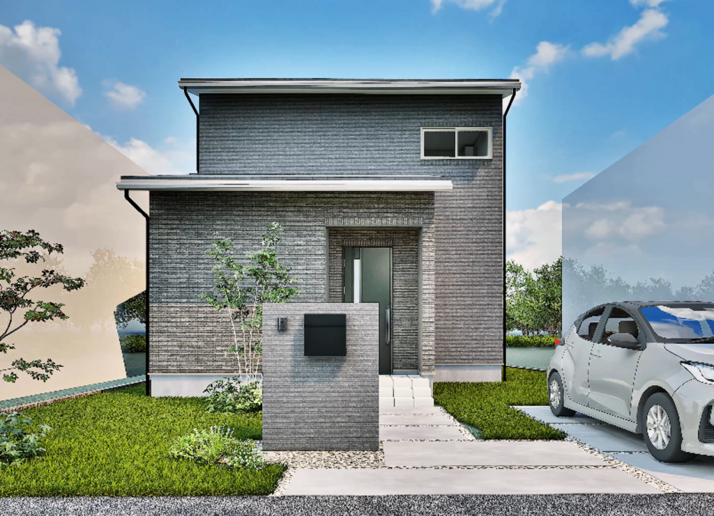 ブラックとグレーのタイルを組み合わせた外観は、コンパクトな建物にも凛とした存在感を与えています。タイルの組み合わせで印象がどこまで変わるか、ぜひ現地でご確認ください。