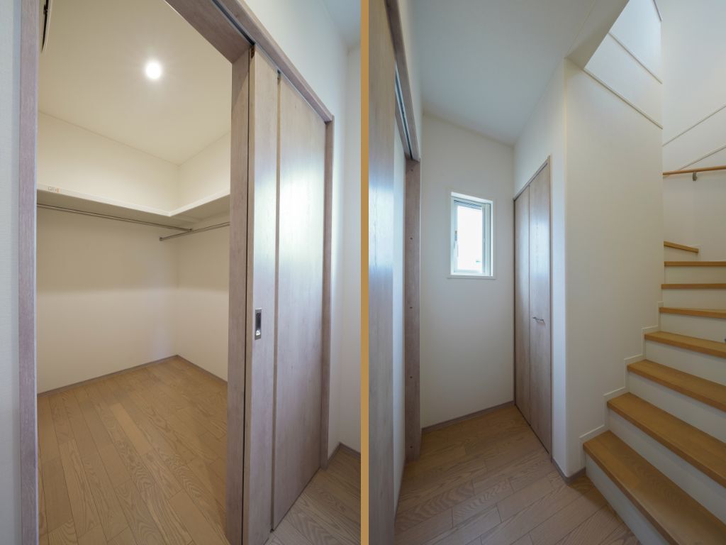 1階室内だけでも収納スペースをたくさん確保。玄関・トイレ・水回り・キッチン周りだけでなく、2帖のウォークインクローゼットもあり、1階に衣類も収納できるような間取りになっています。