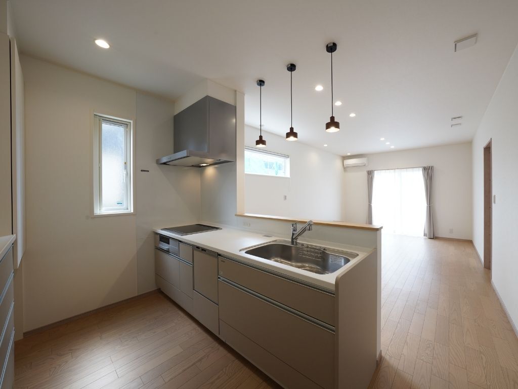 家族が集うLDKは一体型になった過ごしやすい空間に仕上げました。壁や仕切りがないので視覚的に広がりが生まれ、自然光が部屋全体にいきわたりやすく明るい室内です。キッチンで作業をしていても、ダイニングとリビングにいるご家族の気配を感じながら、会話が弾みコミュニケーションが活発になります。