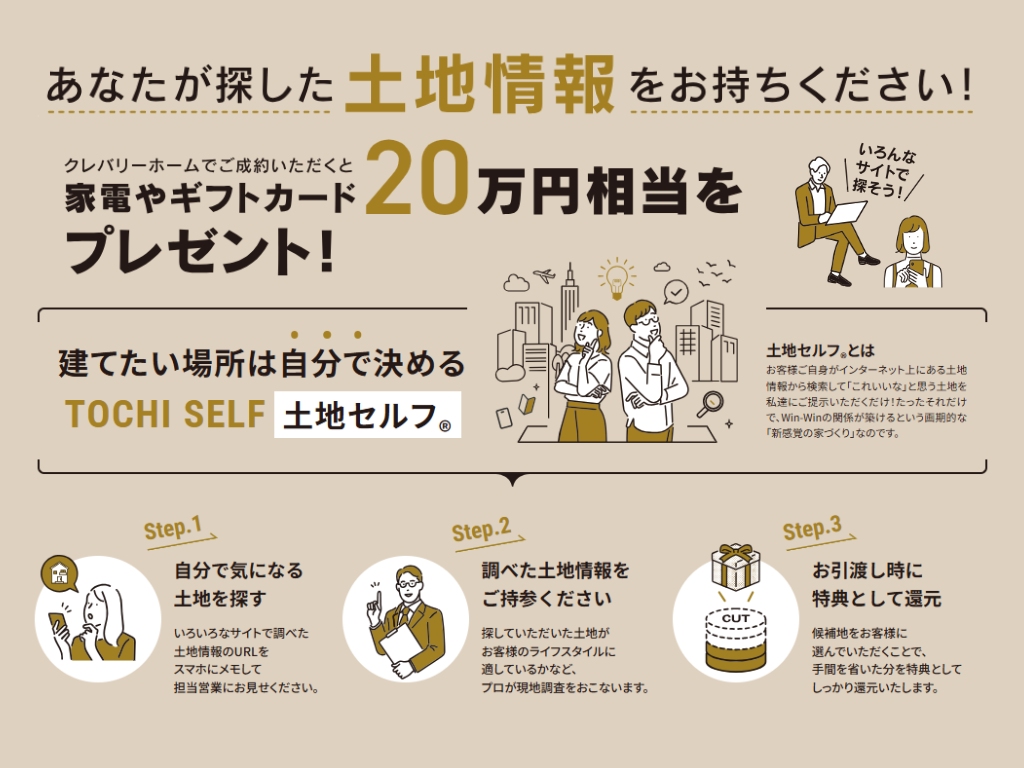 特典3:ご成約で「土地セルフ」20万円相当の特典をプレゼント!