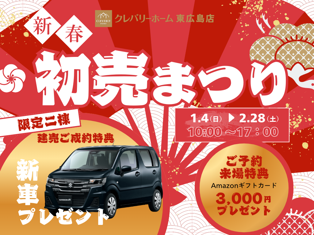 | タイトル | 限定二棟!!建売ご成約特典≪新車プレゼント≫新春初売まつり🎉 |