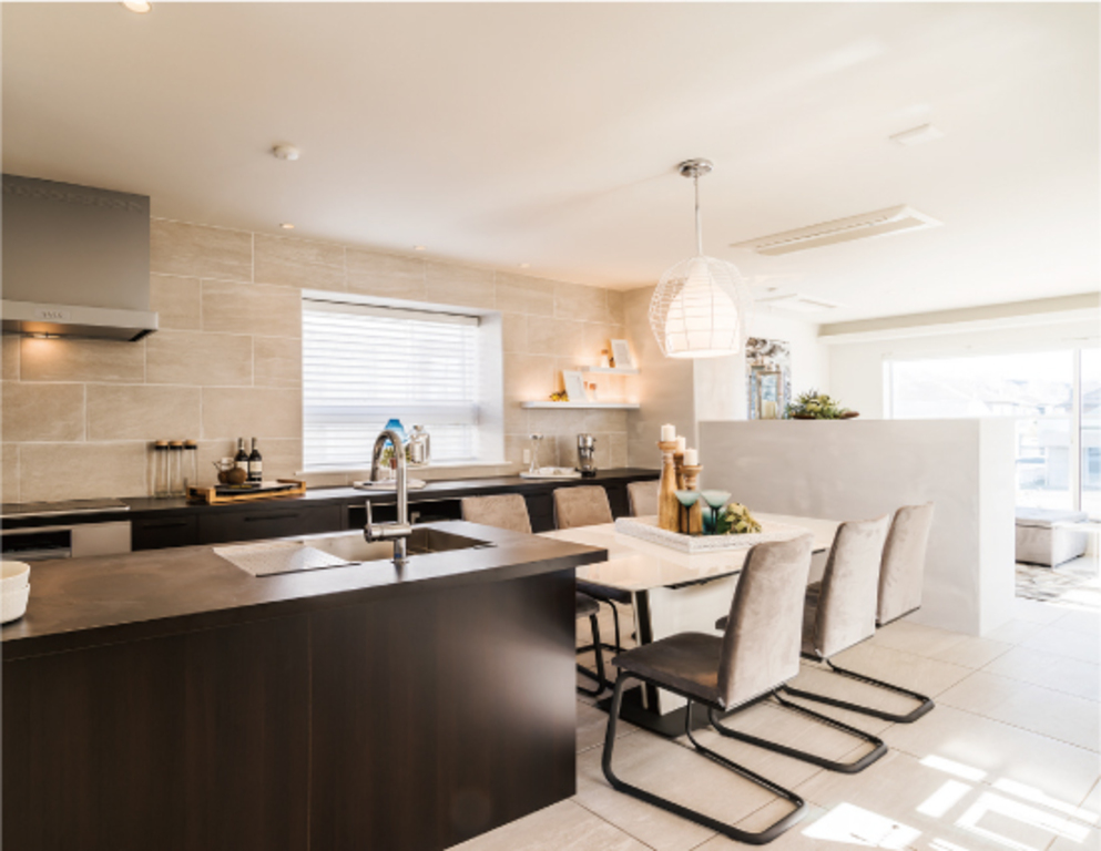 おしゃれなオープンキッチンと、