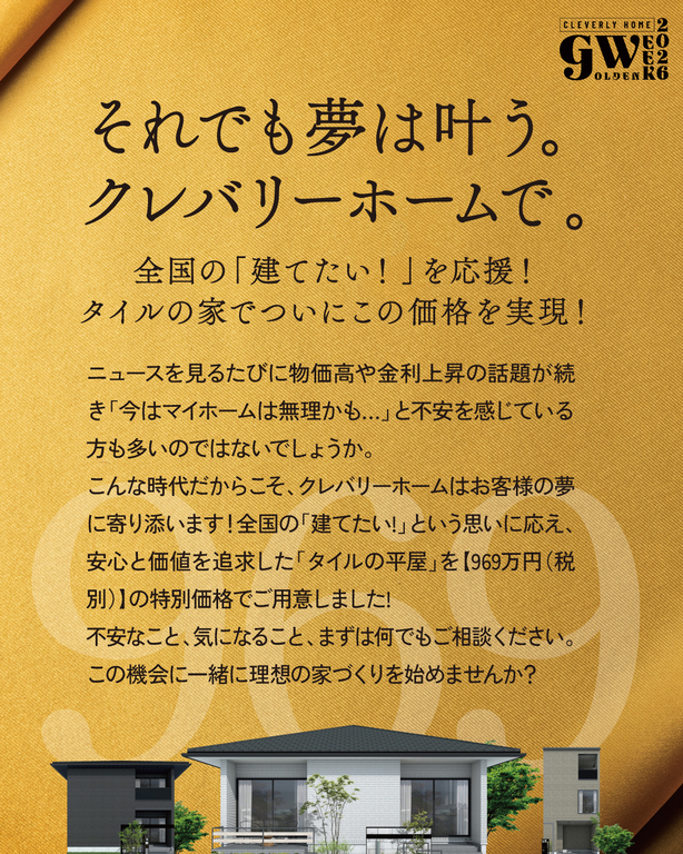 【限定3棟! 広島市近郊でマイホームを叶えるなら】クレバリーホーム GWキャンペーン開催中!