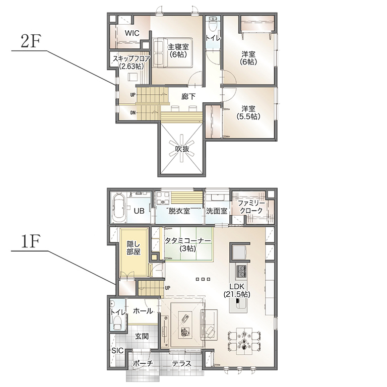 南玄関・3LDK+タタミコーナー・隠し部屋・スキップフロア
