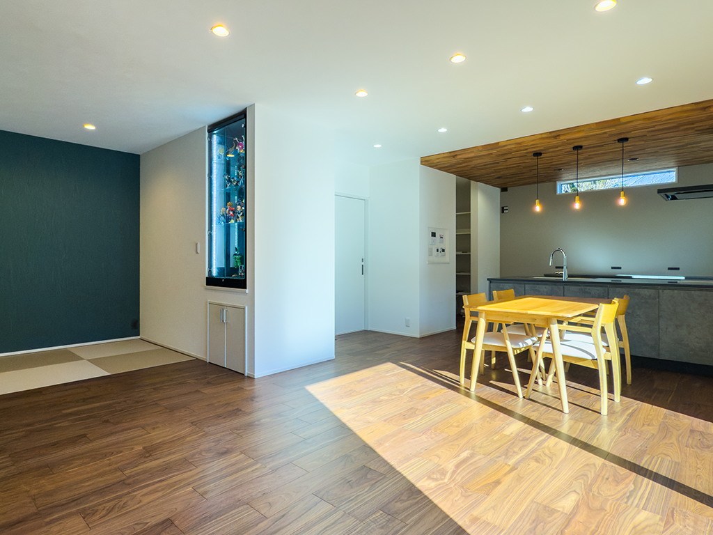 落ち着いた美しさを持つインテリアと、柔らかな光を放つ折下天井が、LDK全体に格別な上質感を演出します。
