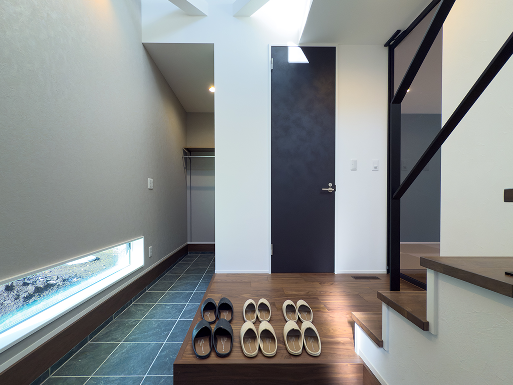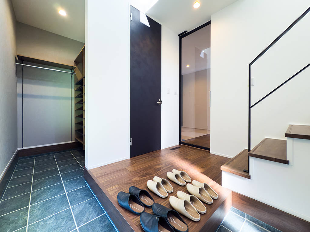 吹き抜けが明るく開放的な設計の玄関ホールは、住まいの第一印象を格上げします。