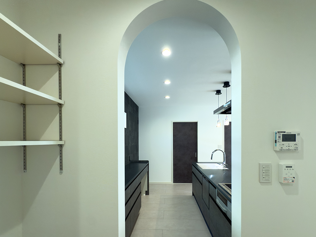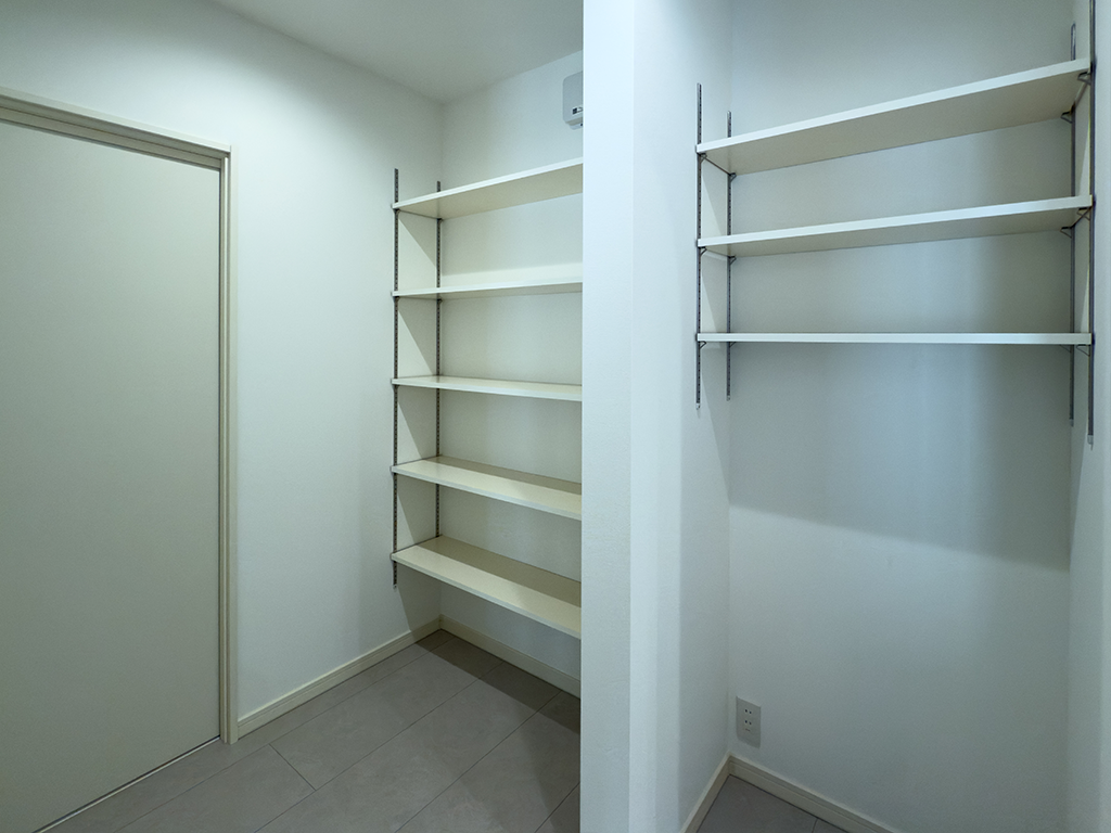 キッチン横には、食材などをストックできる大容量のパントリーを配置。