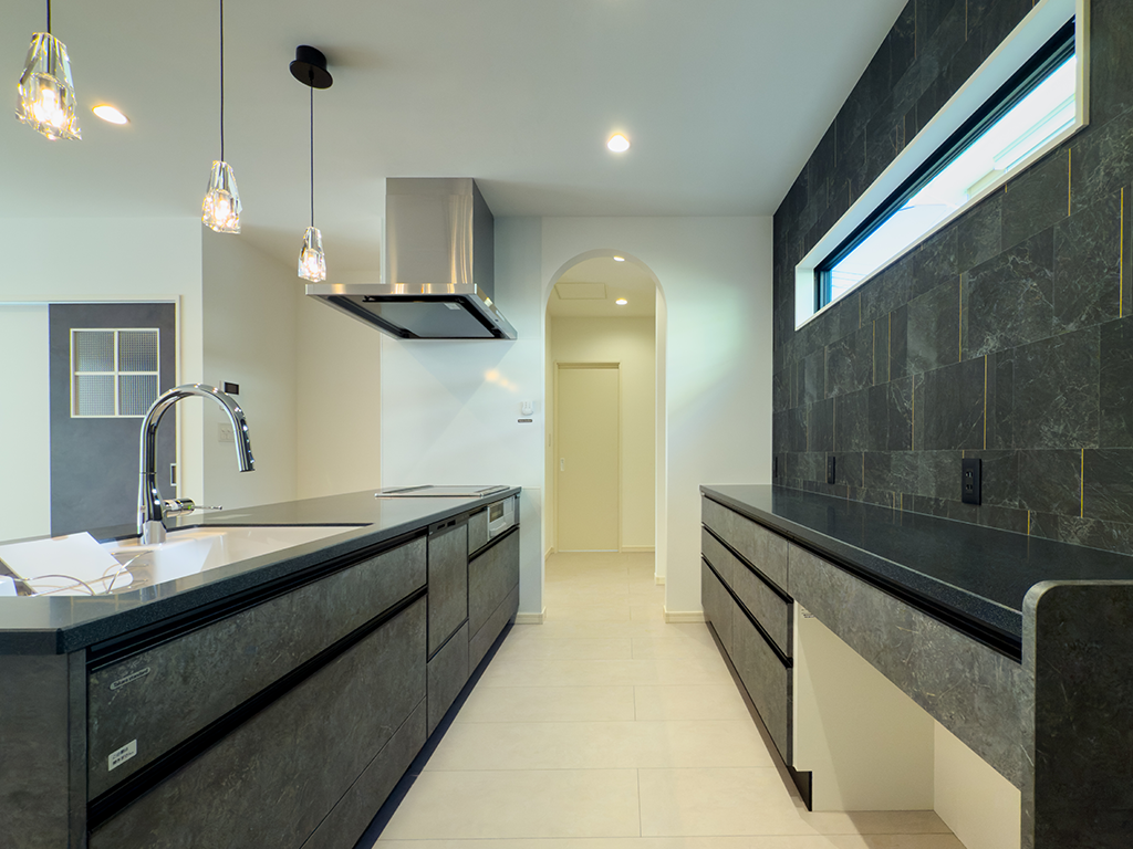 落ち着いたモノトーン空間と、ストレスフリーな家事動線!