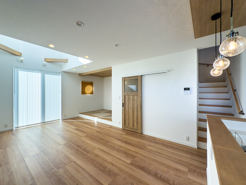 さらに、隣合う小上がりのタタミコーナーは、LDKと合わせると21帖の大空間。