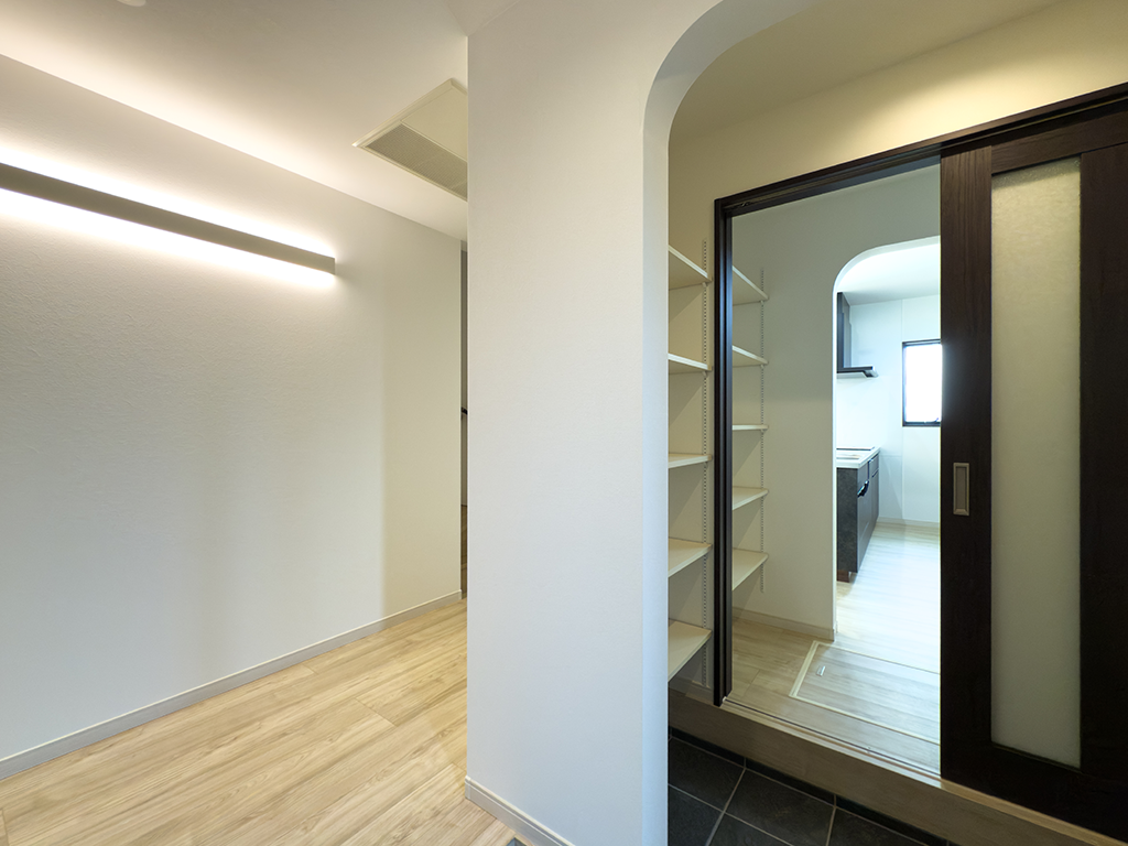 玄関からパントリーへ直結の賢い間取り