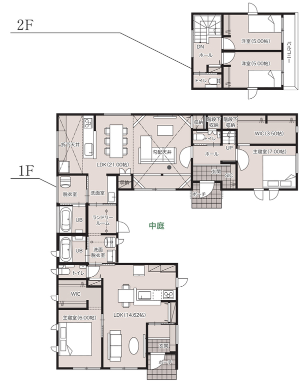 【3月1日まで】ほどよい距離感が心地いい1.5階建ての二世帯住宅 #勾配天井 #中庭