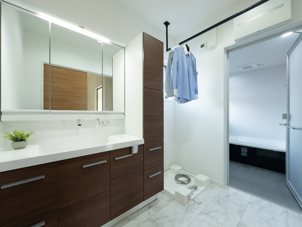 「洗う・干す・しまう」が短い距離で完結する家事ラク動線です。