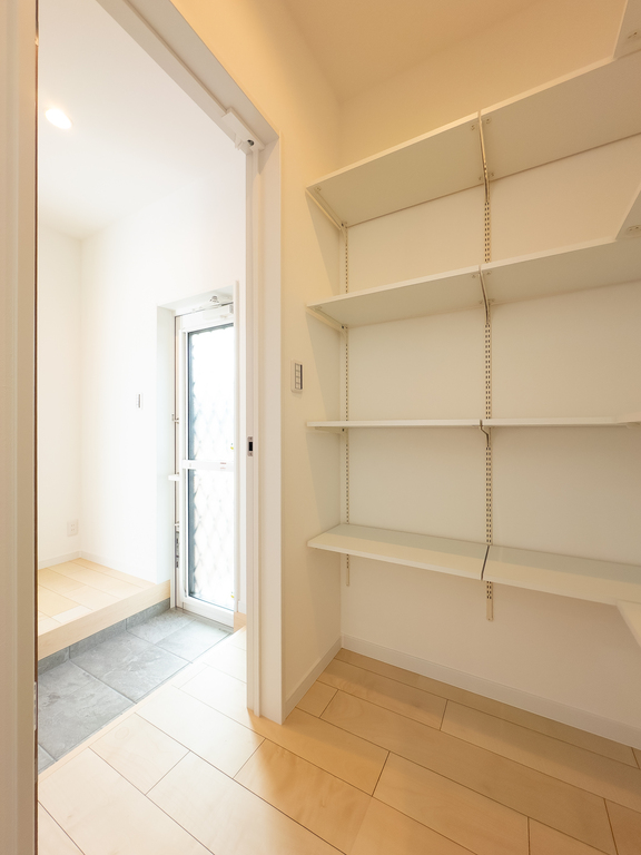 パントリーの奥に設けられた勝手口は、実用性抜群!