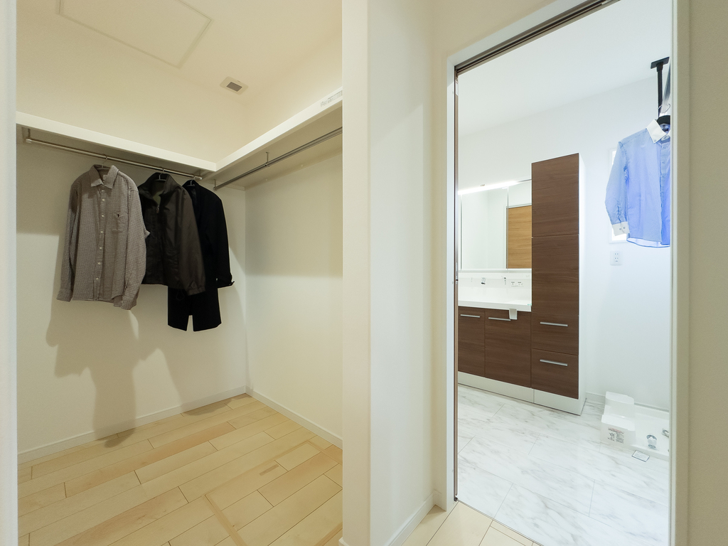 洗面脱衣所を出てすぐの場所に、大容量のファミリークロゼットを配置。
