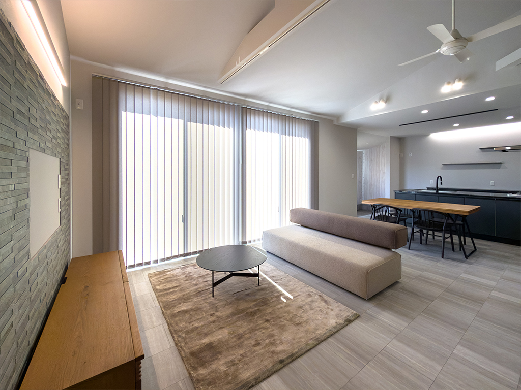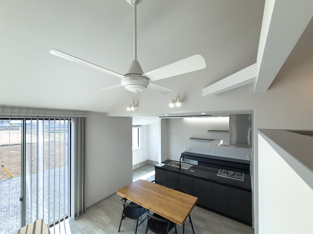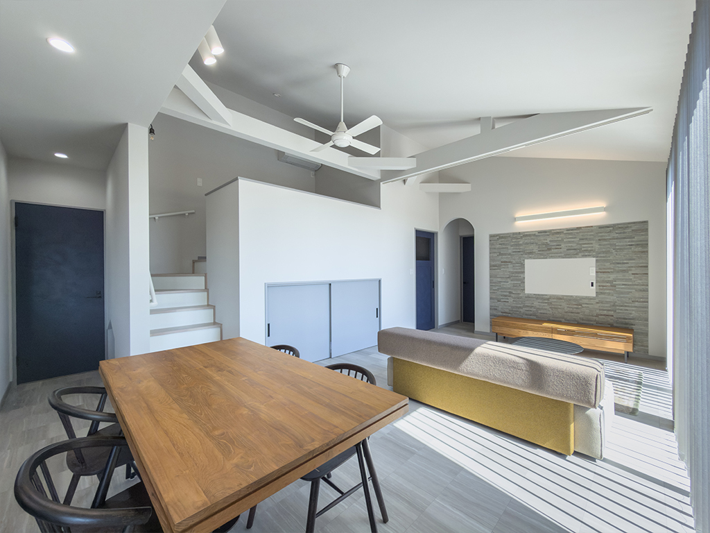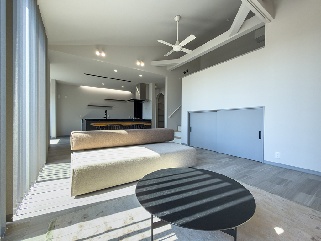 吹抜け×勾配天井が生み出す、開放的なLDK