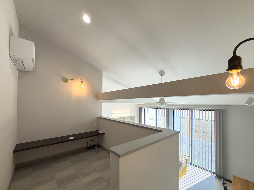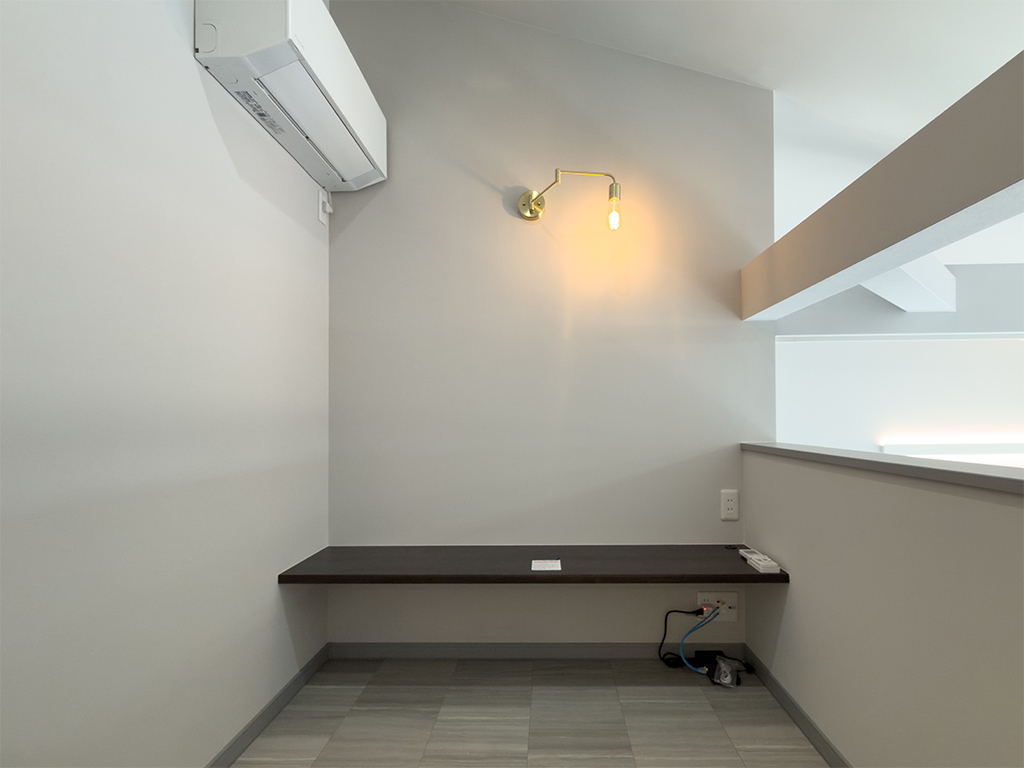 リビングから視線が抜ける「スキップフロア」は、家族の気配を感じつつも、仕事や趣味に没頭できる絶妙な「おこもり感」が魅力。