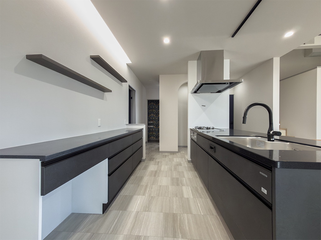 キッチンをぐるりと回れる回遊動線は、調理中の移動を最小限にし、家族の家事負担をグッと軽減してくれます。