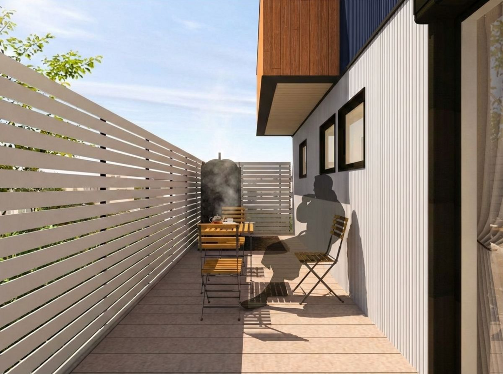 リビングの先には、外の視線を気にせず過ごせるプライベートなウッドデッキが広がります。