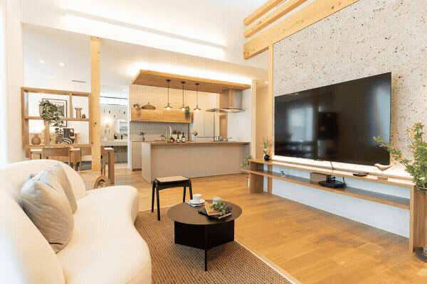 ✔️吹き抜けと大きな窓が生み出す、開放的な広々リビングを体感できます