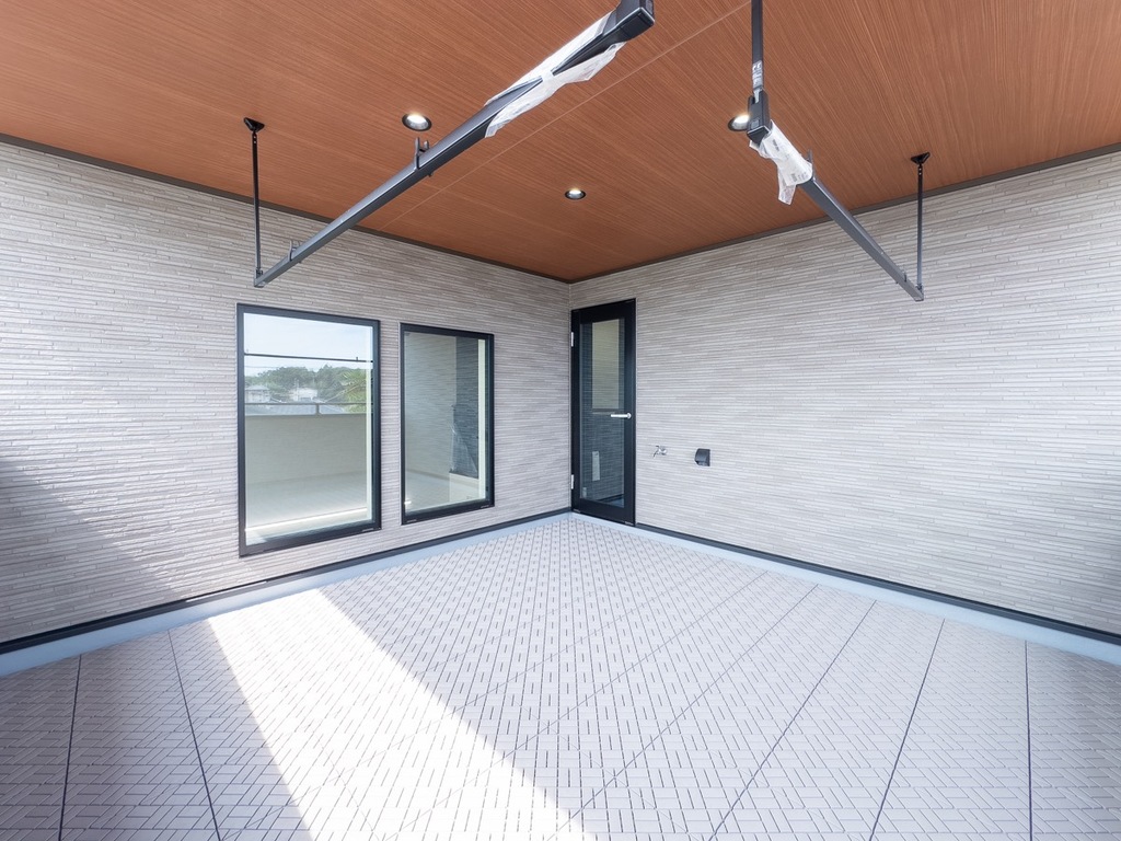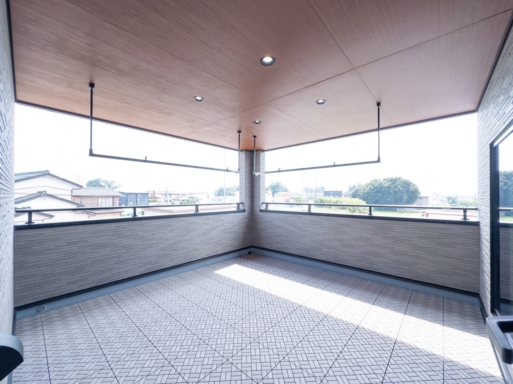 雨の日でも洗濯物を安心して干せる、8帖のインナーバルコニー。