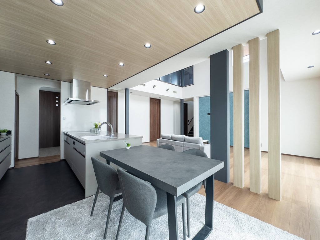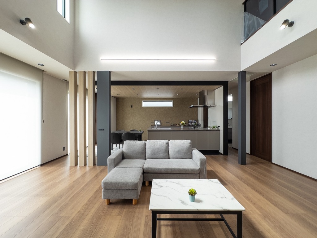 天井までのびやかな吹き抜けと30帖のLDKが一体となった、圧倒的な開放感。