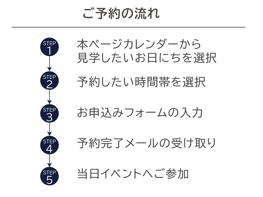 個人情報への配慮からご予約いただいた方には、個別に見学会場の住所をお知らせいたします。