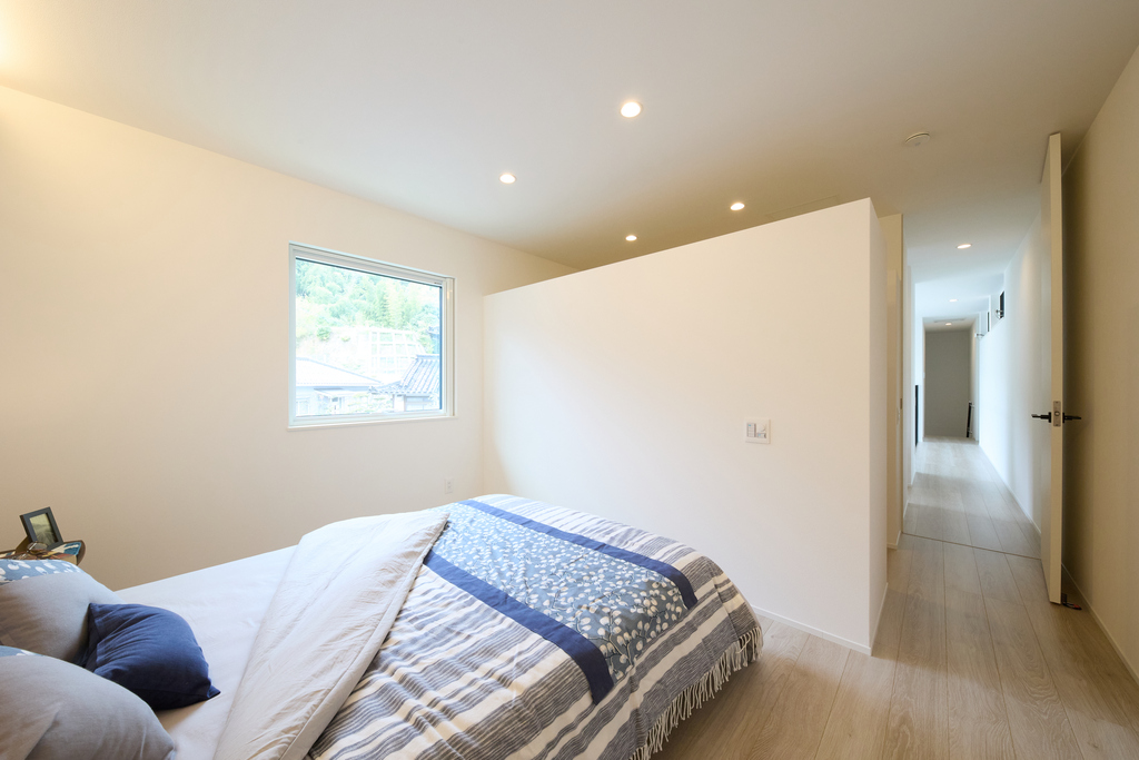 ウォークイン付き寝室は、収納と快適さを兼ね備えた空間です。クローゼットが備わっていることで、服やアクセサリー、その他のアイテムをすっきりと整理できます。より快適で広々とした印象を与えつつ、生活感を感じさせないシンプルで洗練された空間を作れます。
