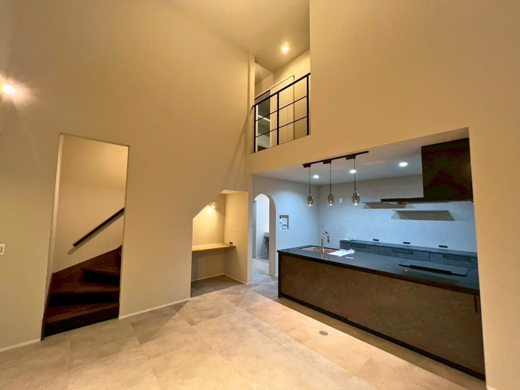 広々としたリビングと一体化したキッチンでは、家族や友人との楽しい時間が広がります。