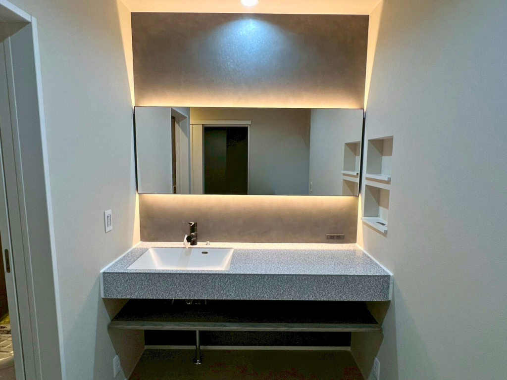 洗練されたデザインの洗面エリアは、日常の時間に優雅さをプラスします。
