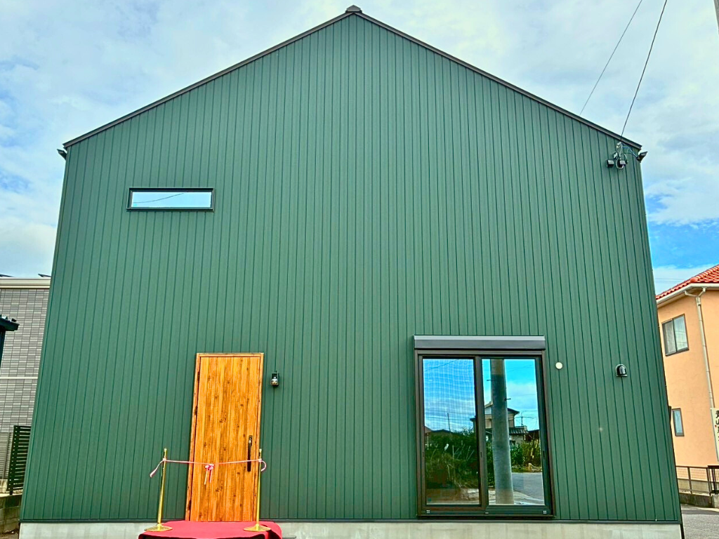 外観はシンプルモダンなモスグリーンのガルバリウム鋼板🍃