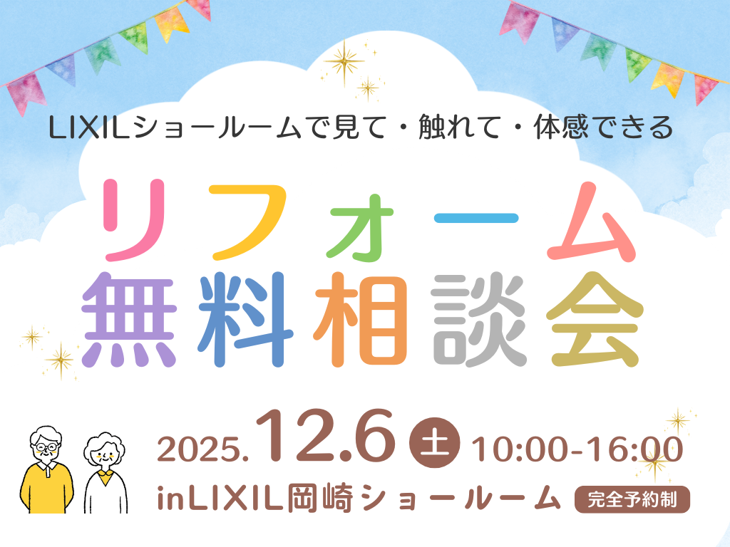 | タイトル | 【完全予約制】今年最後のお得なイベント★LIXIL岡崎SRで無料リフォーム相談会★ |