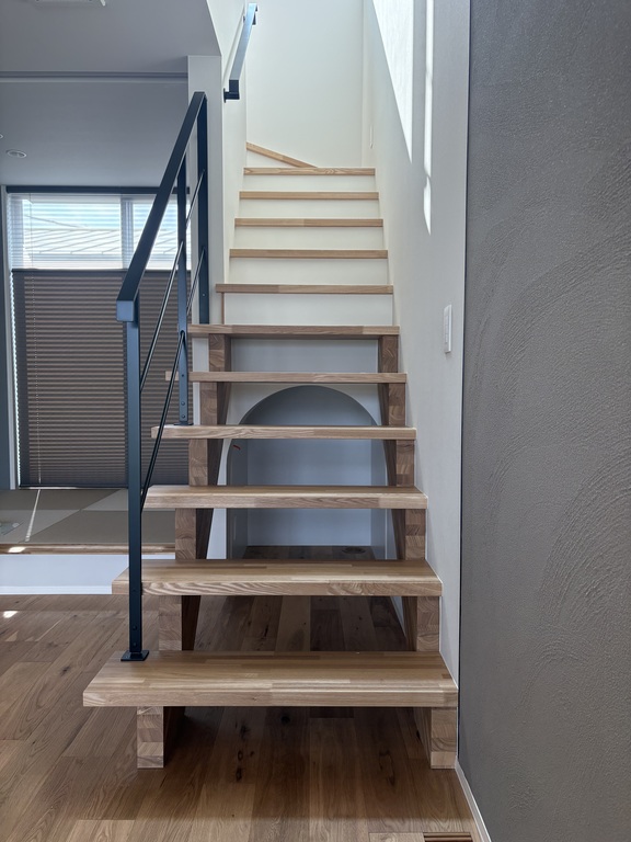 階段下のアーチや広いリビングなど、猫が自由に動ける工夫を随所に設計。